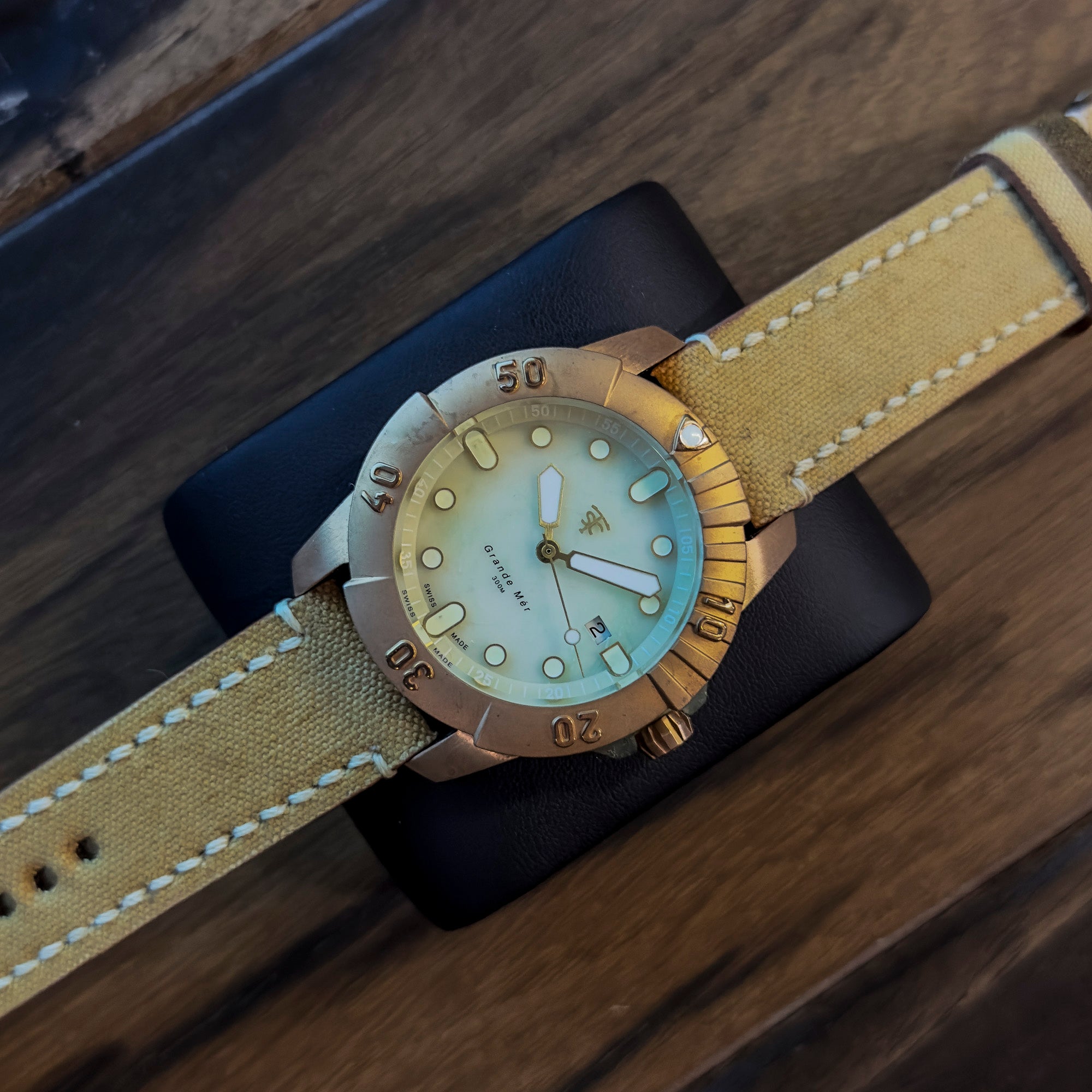 Go ahead and stare! Our nautilus inspired custom bronze rotor sits behind a sapphire crystal caseback and keeps this watch charged and you move.