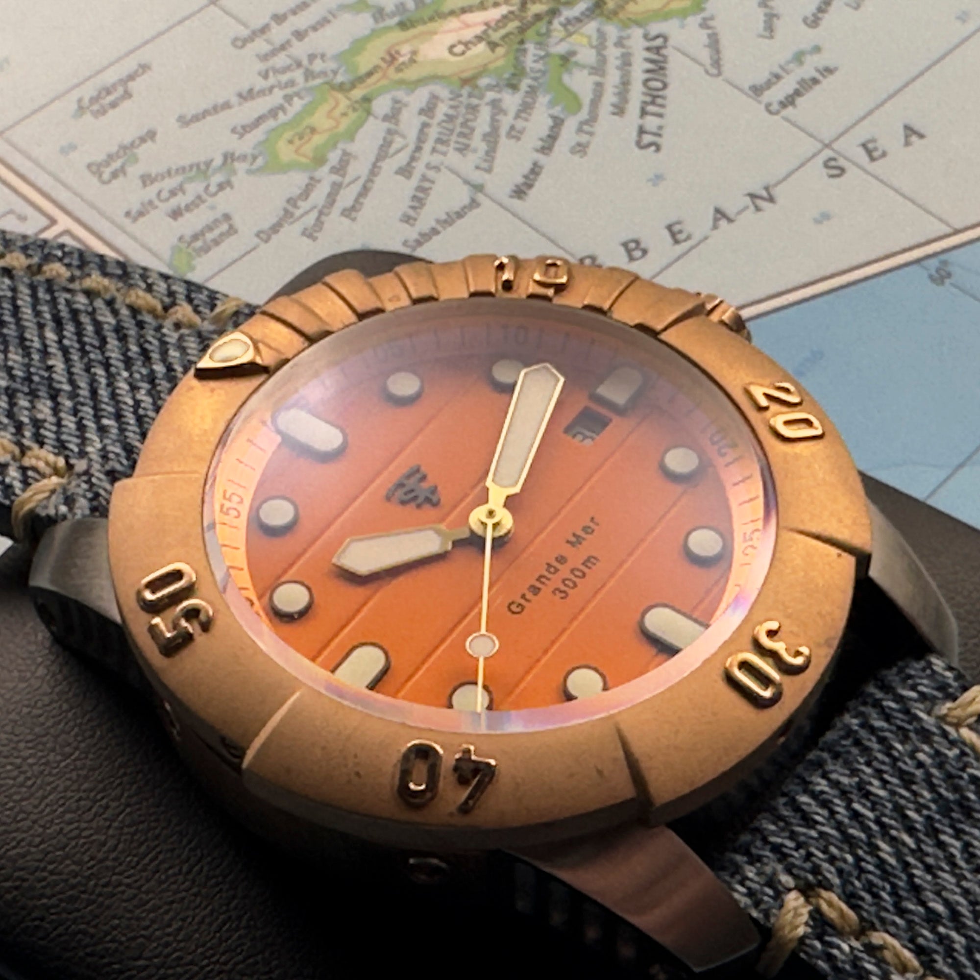 - 44m Bronze / Stainless Steel Case, 300m rated