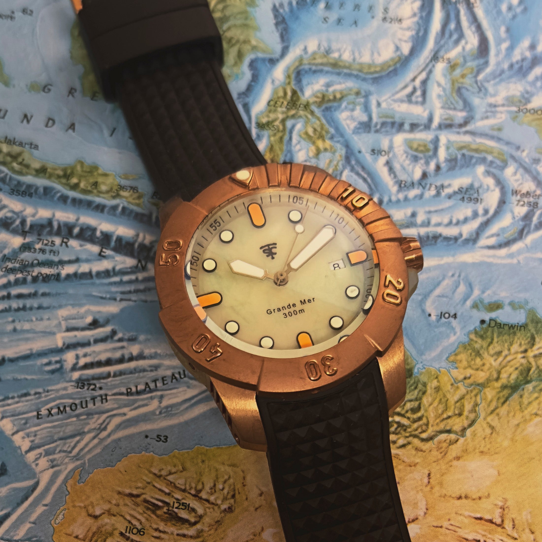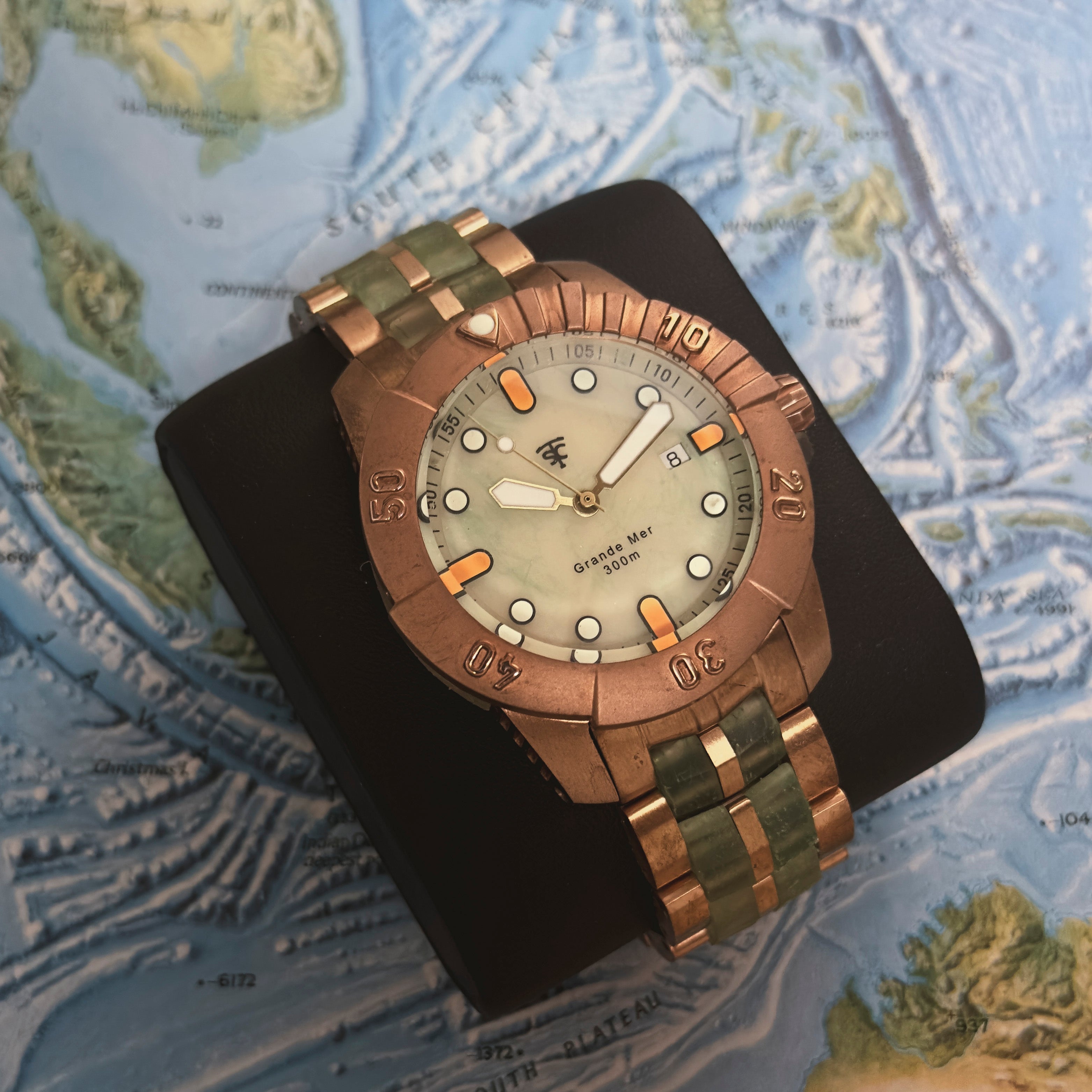 Pearl Diver II is a "mod watch" from our La Grande Mer Collection. We developed some unique dial materials and combinations as spicy updates and alternatives to an already iconic watch.