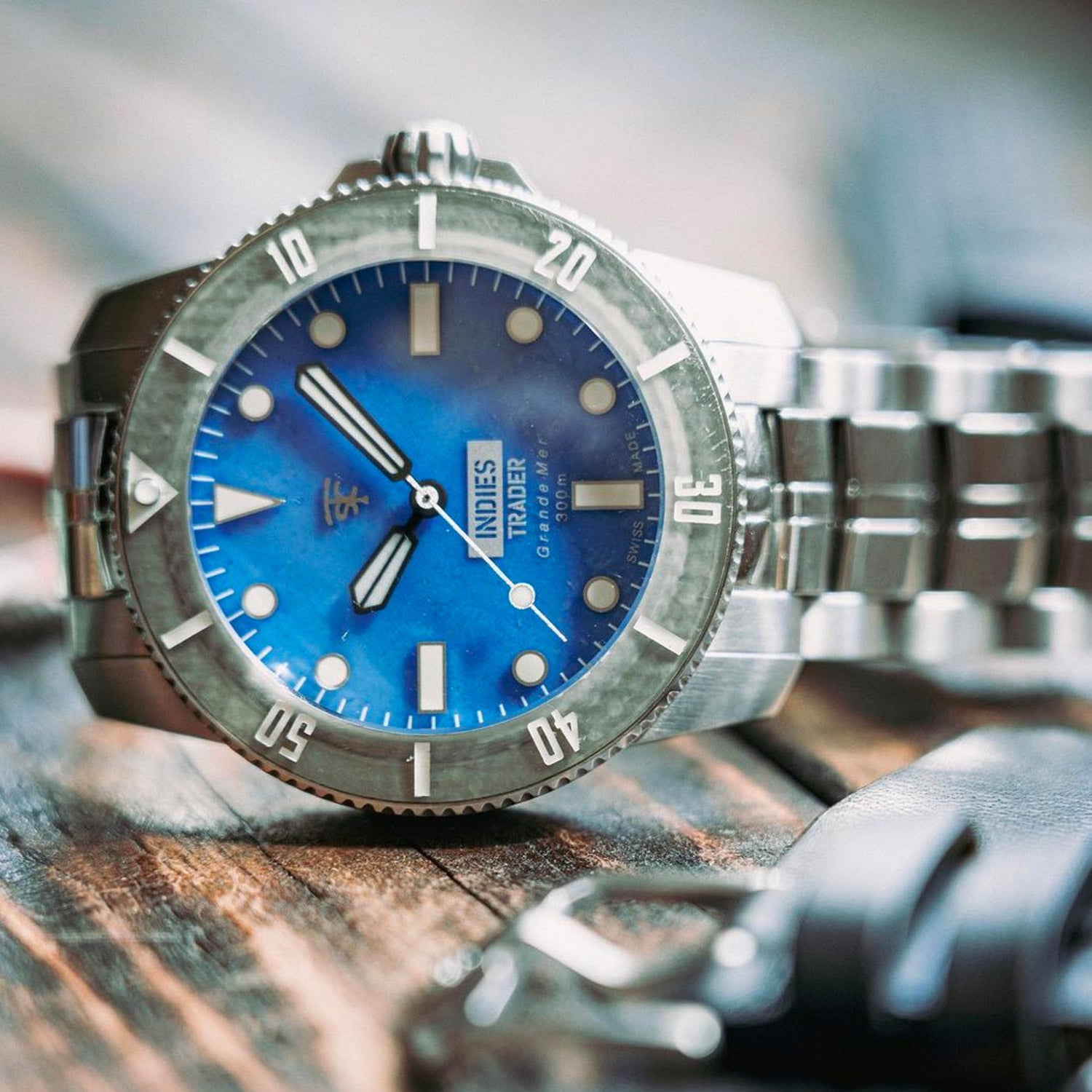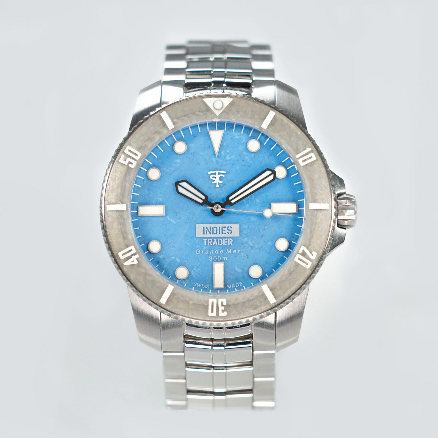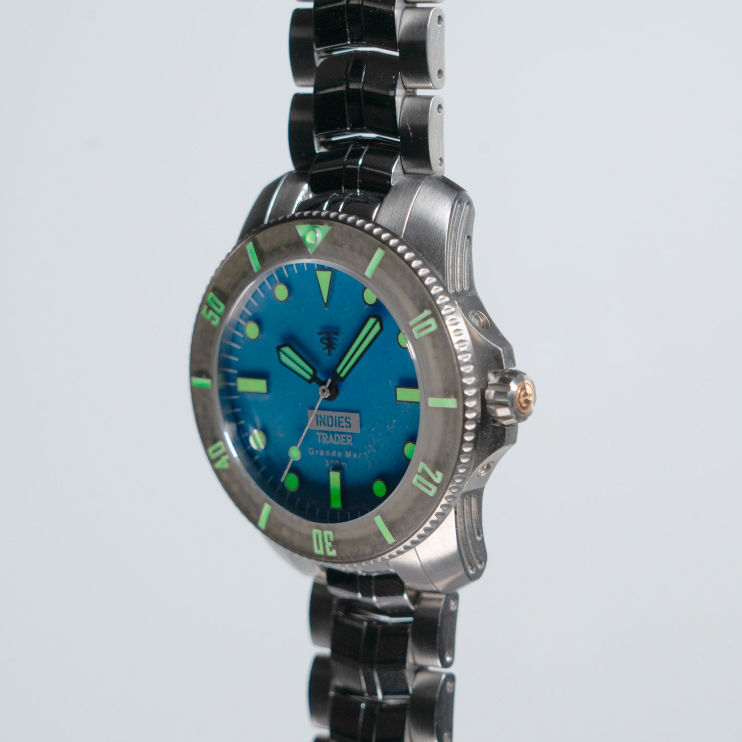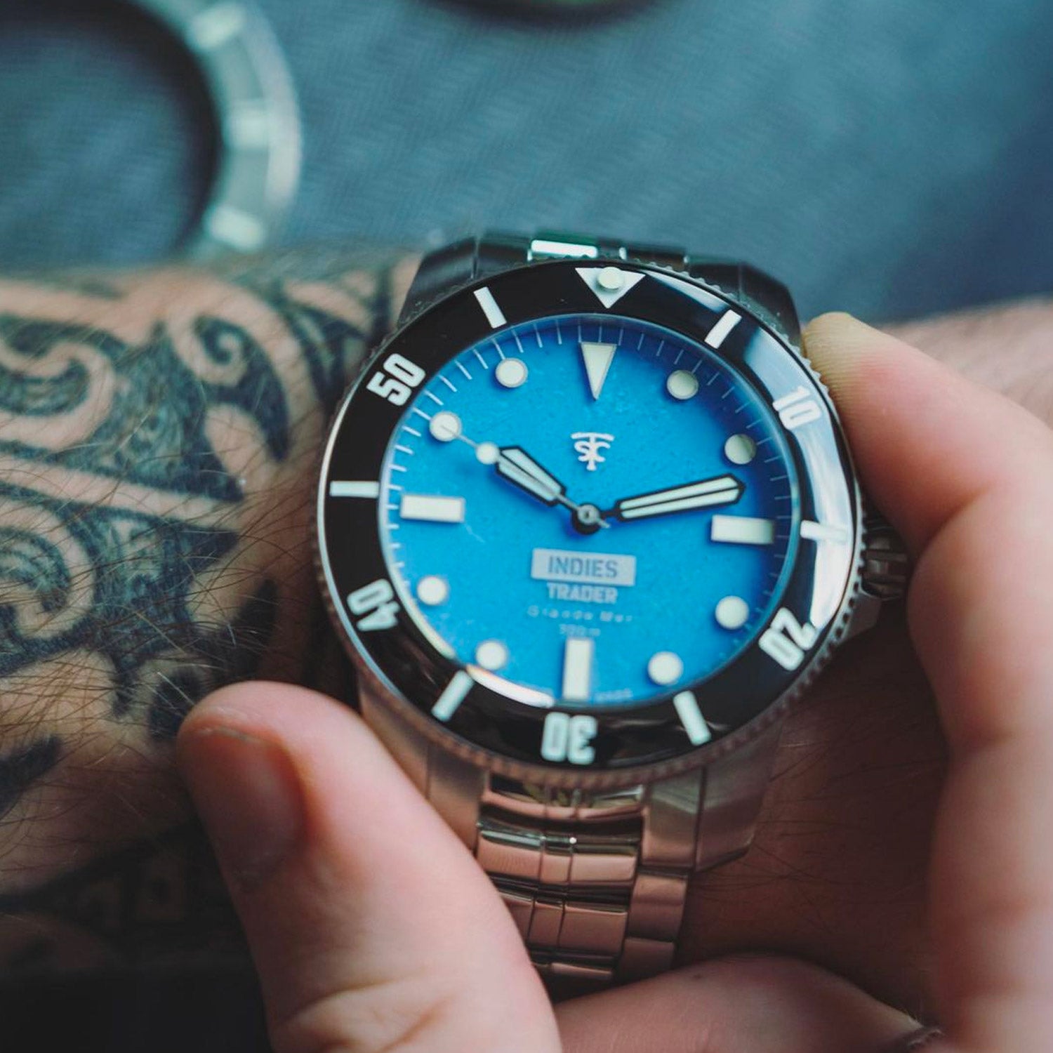 A watch collaboration celebrating the essence of adventure on the high seas. Designed for and in collaboration with Indies Trader Founder, Martin Daly, this watch project came together over long-distance story telling during the Covid 19 lockdown.