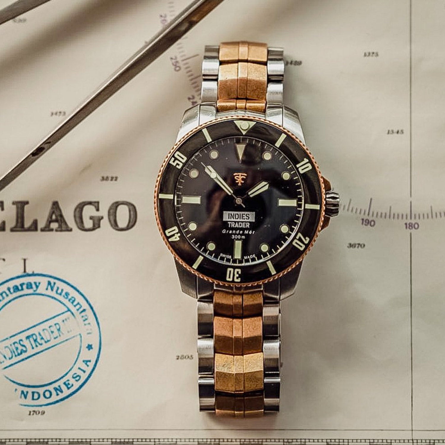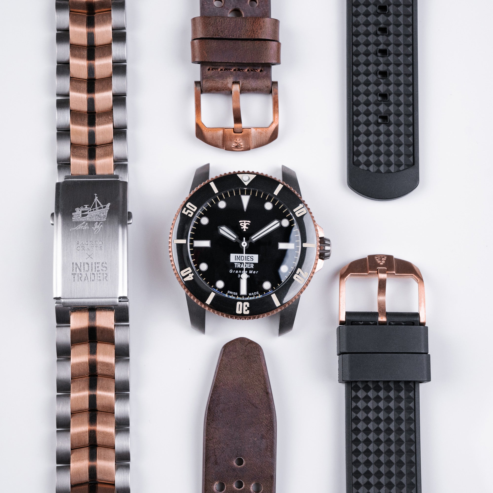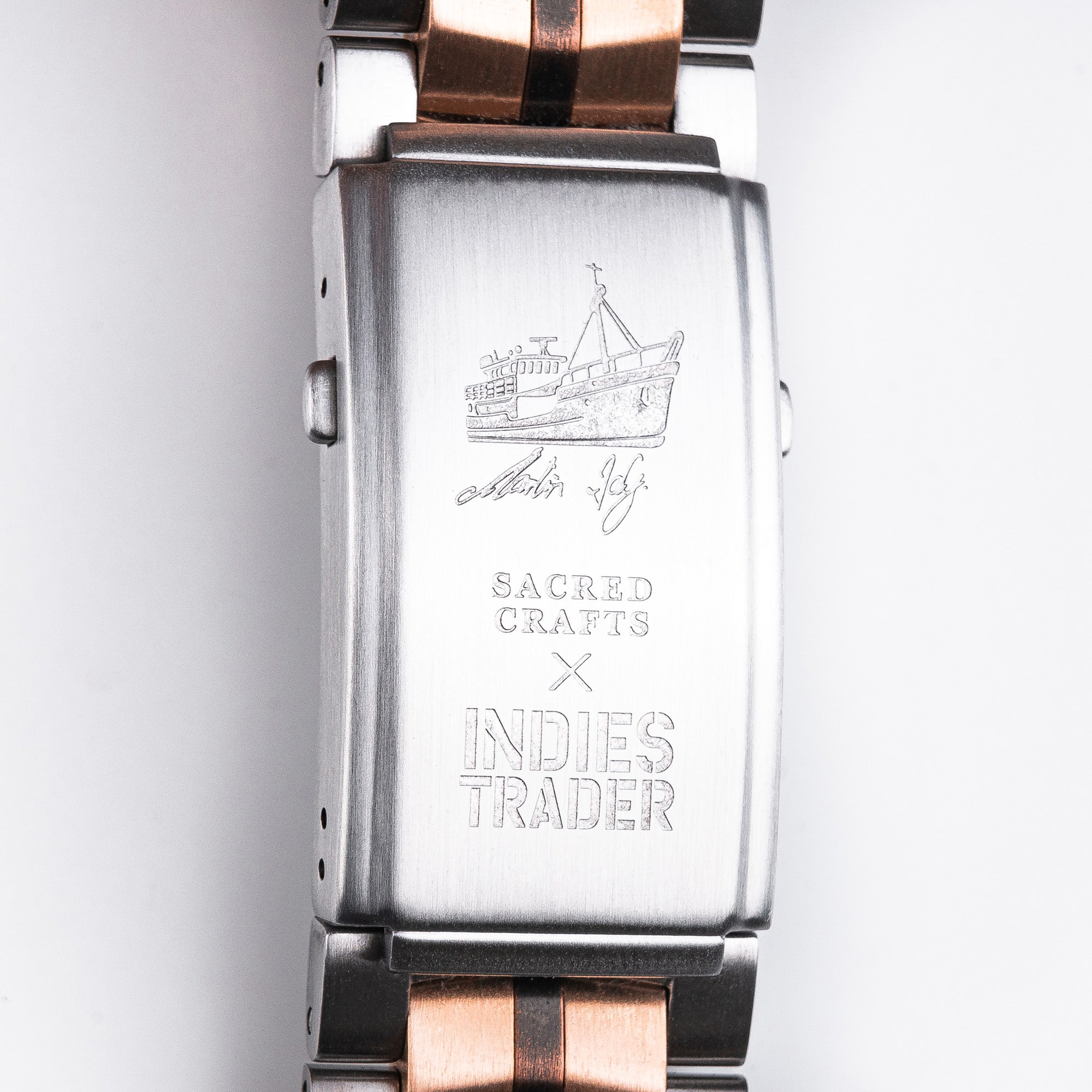 A watch collaboration celebrating the essence of adventure on the high seas. Designed for and in collaboration with Indies Trader Founder, Martin Daly, this watch project came together over long-distance story telling during the Covid 19 lockdown.