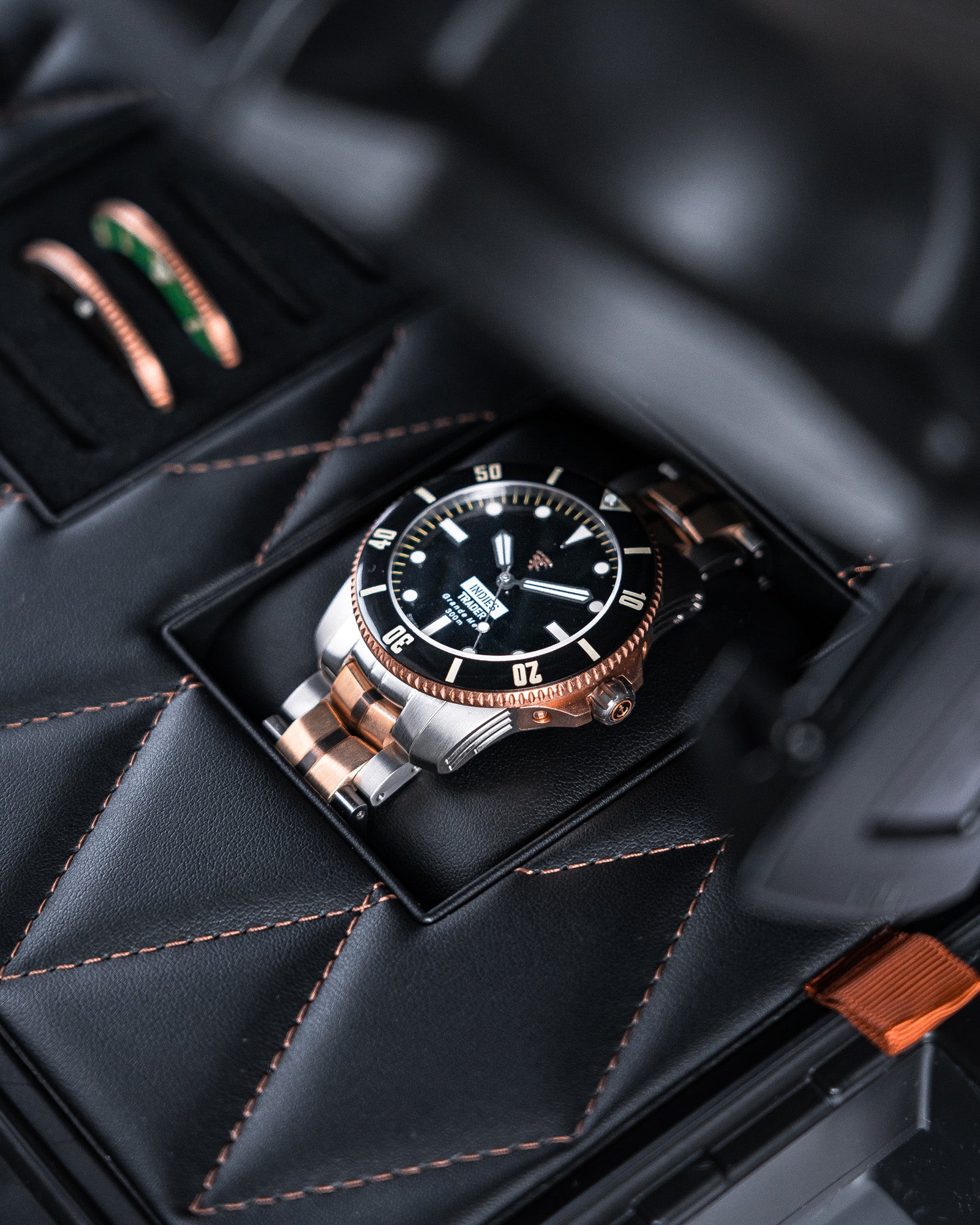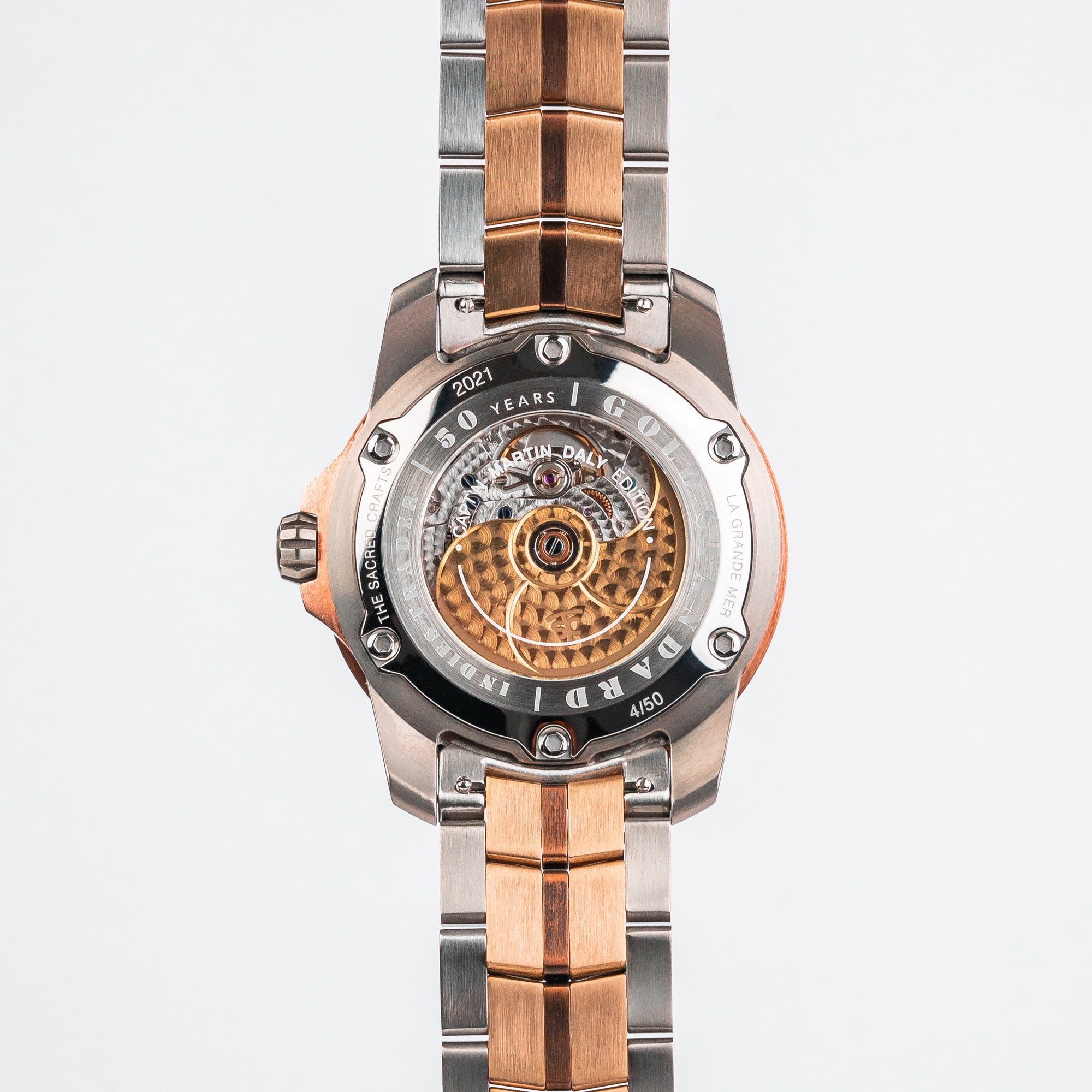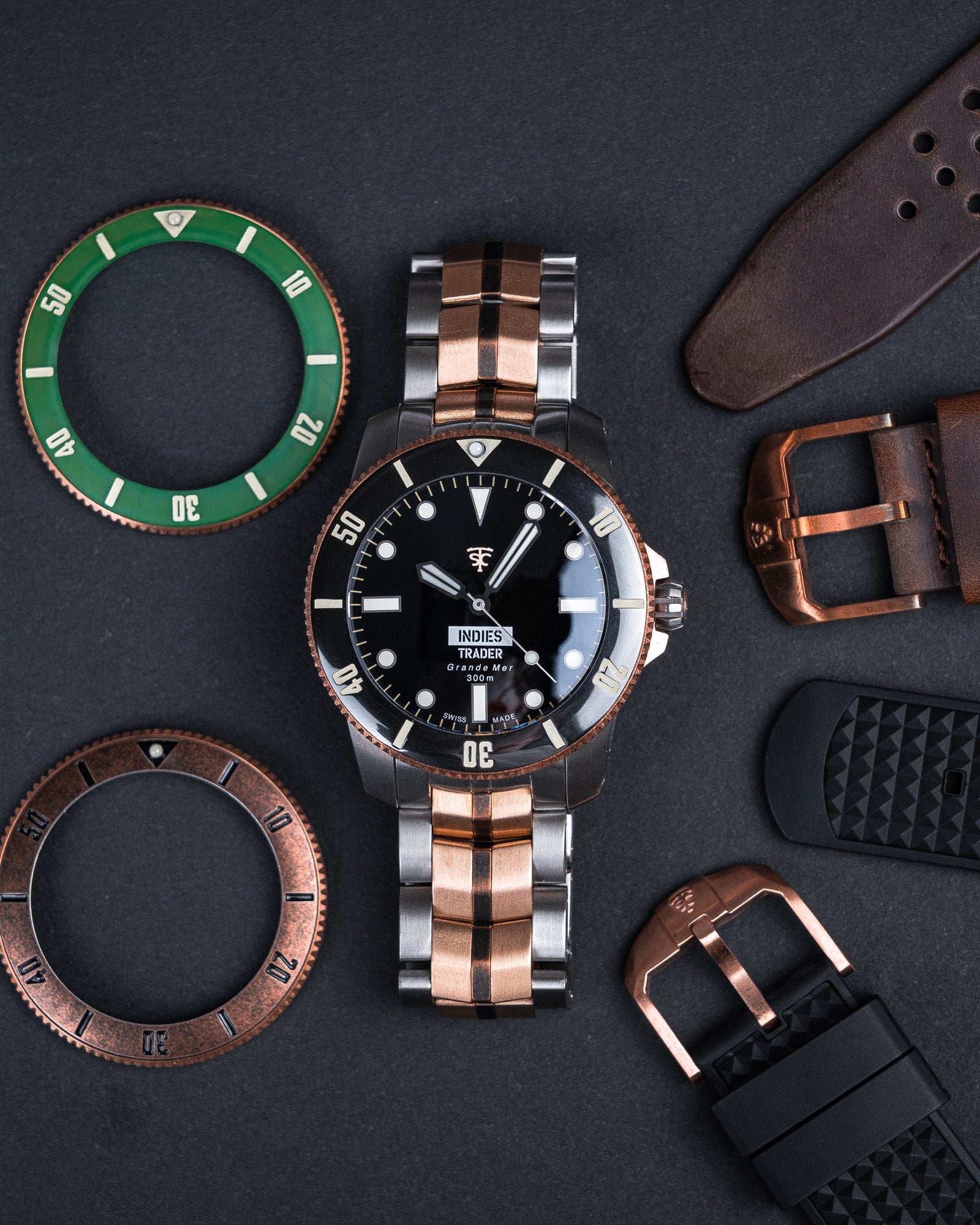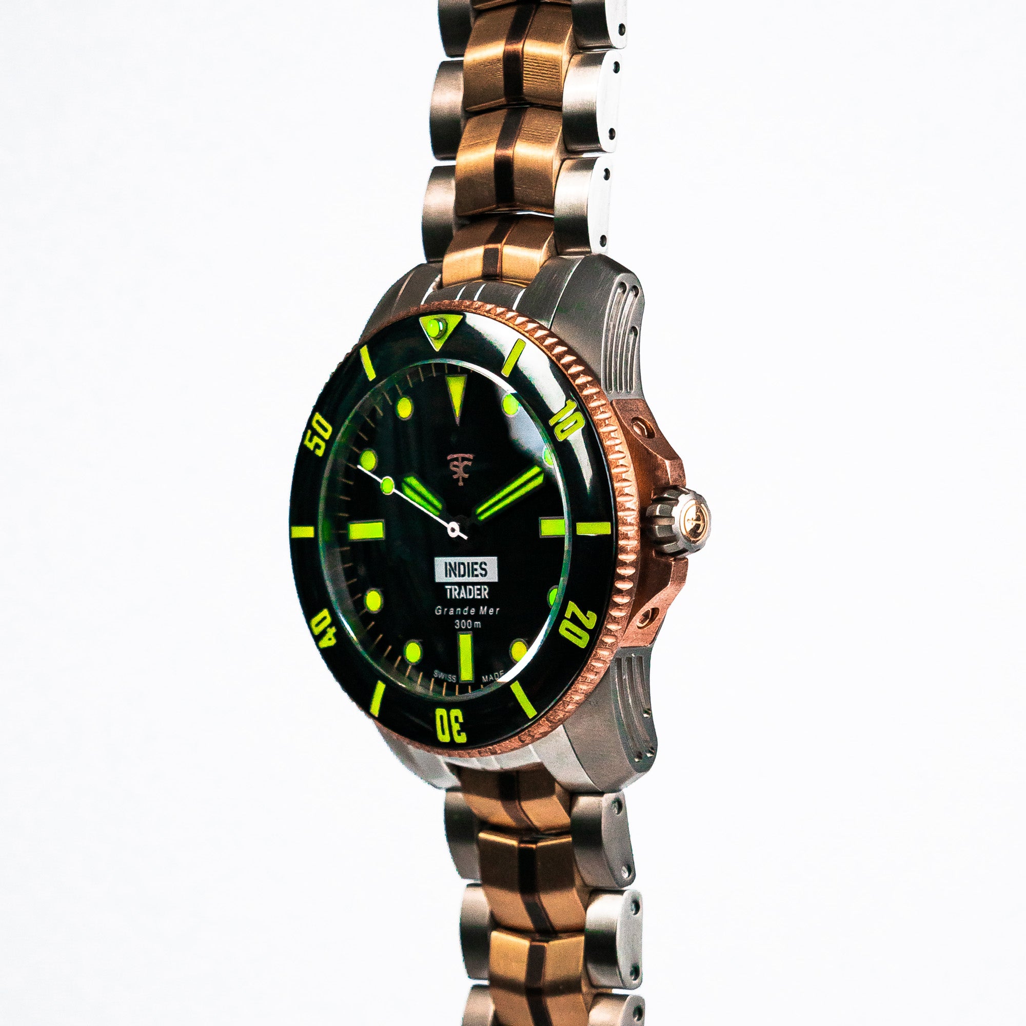 A watch collaboration celebrating the essence of adventure on the high seas. Designed for and in collaboration with Indies Trader Founder, Martin Daly, this watch project came together over long-distance story telling during the Covid 19 lockdown.